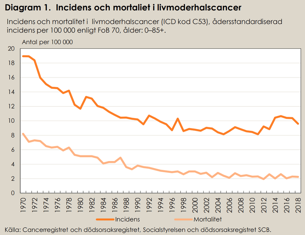 TIll skillnad från prostatascreening ses en tydligare effekt i form av minskad dödlighet i livsmoderhalscancer varför detta är en av de mest framgångsrika screeningprogrammen i Sverige.